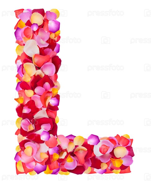 Буква L из разноцветных листьев роз
