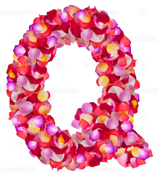 Буква Q из разноцветных листьев роз