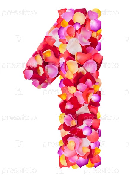 Цифра 1 из красочных лепестков роз