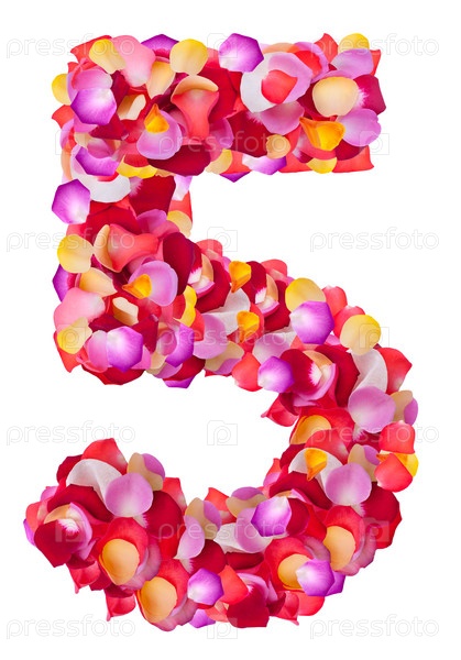 Цифра 5 из красочных лепестков роз