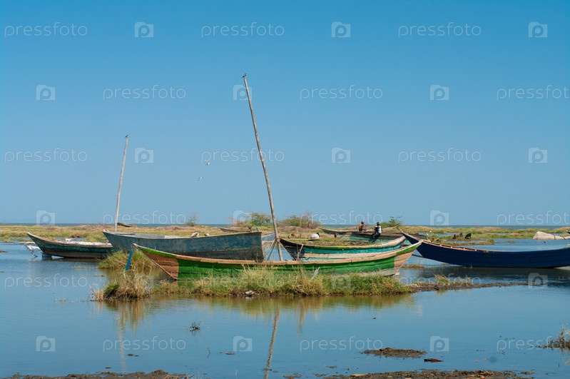 Африканские традиционные рыбацкие лодки на озера Туркана, Кения