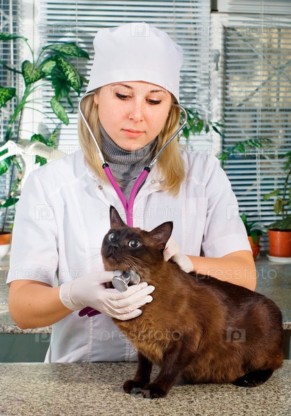 Ветеринарный врач и кошка