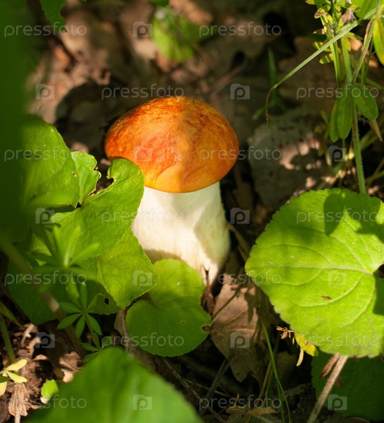 Лесной гриб в траве