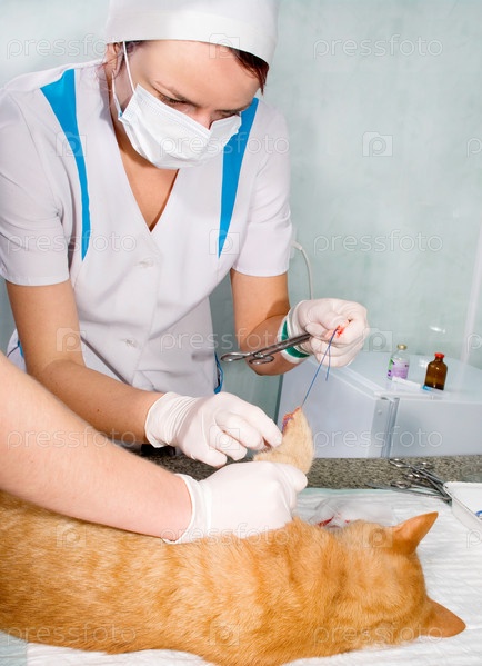 Ветеринары лечат раненого кота