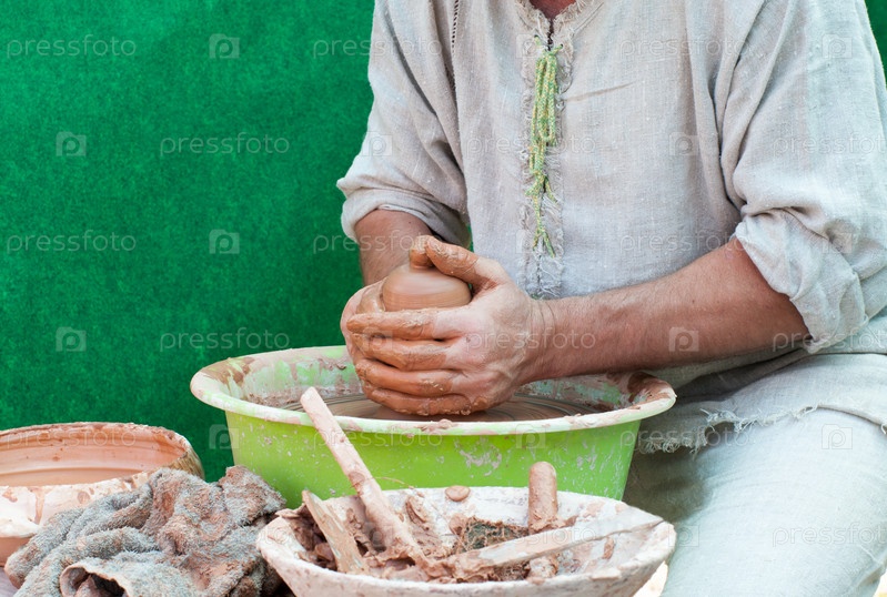 Процесс создания посуда на гончарном круге в мастерской