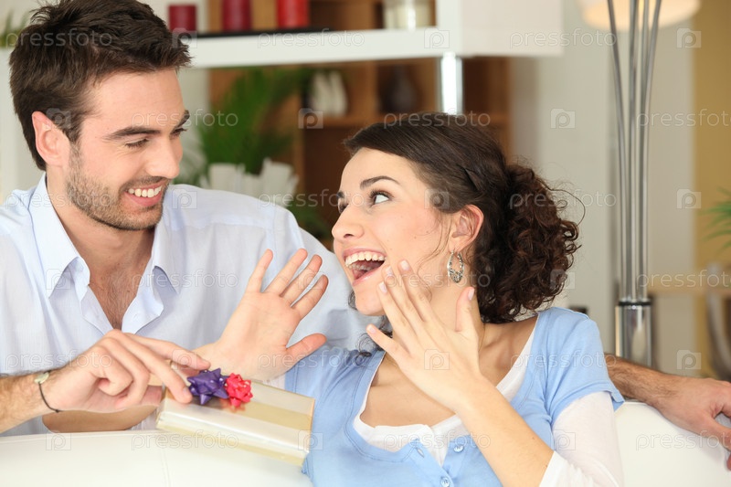 Мужчина дарит жене подарок