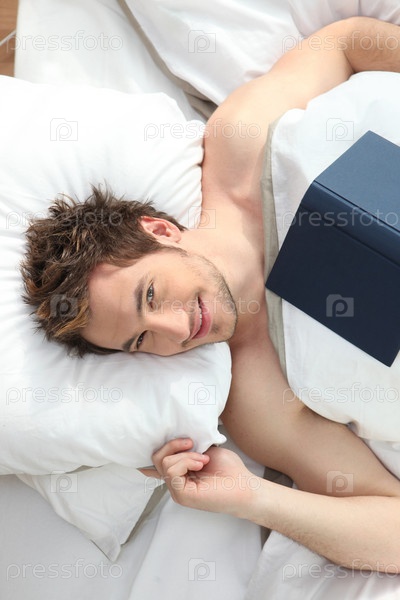 Мужчина читает в постели
