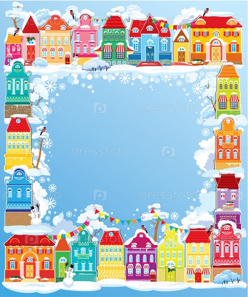 Рождественская и новогодняя рамка со сказочным зимним городом