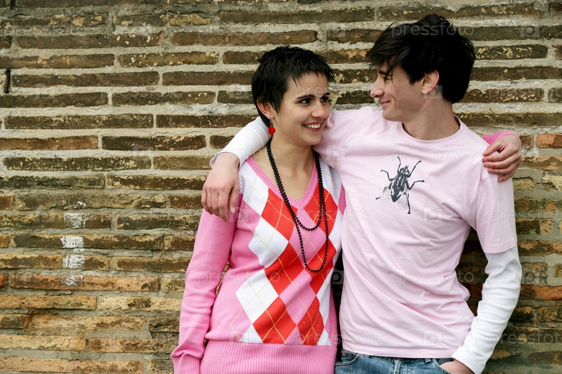 Молодая пара у стены