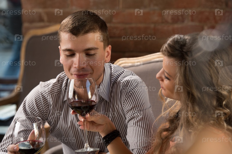Счастливая пара на романтическом свидании в ресторане