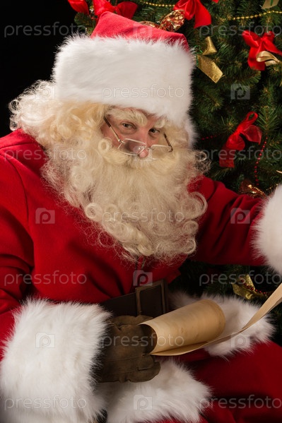 Портрет с Санта-Клауса, читающего письмо с рождественскими желаниями
