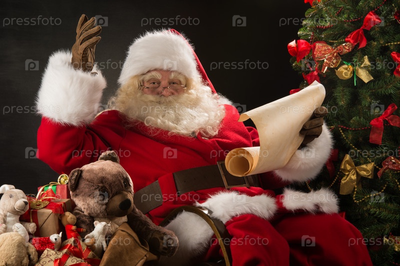 Портрет с Санта-Клауса, читающего письмо с рождественскими желаниями