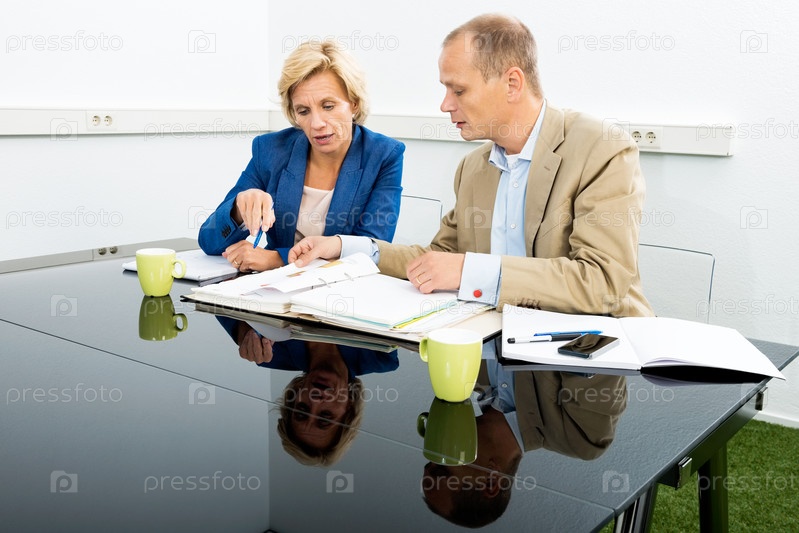 Экологи, обсуждающие документы в офисе