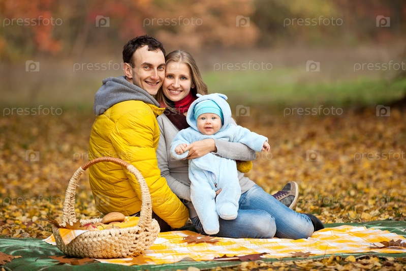 Молодая пара с мальчиком на пикнике