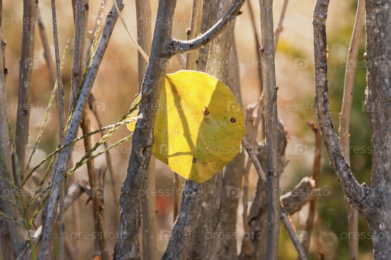 Застрявший между веток осенний лист