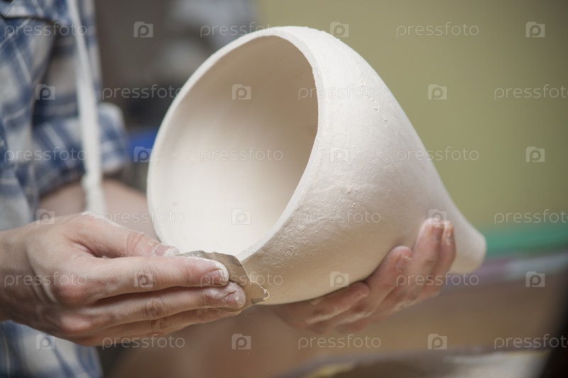 Девушка лепит из глины