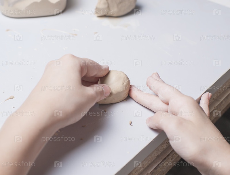 Девочка лепит игрушку из глины