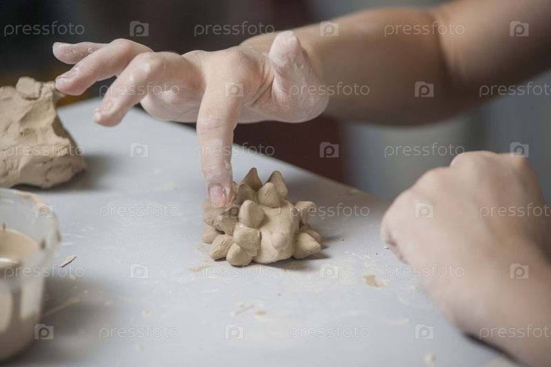 Девушка делает игрушку из глины