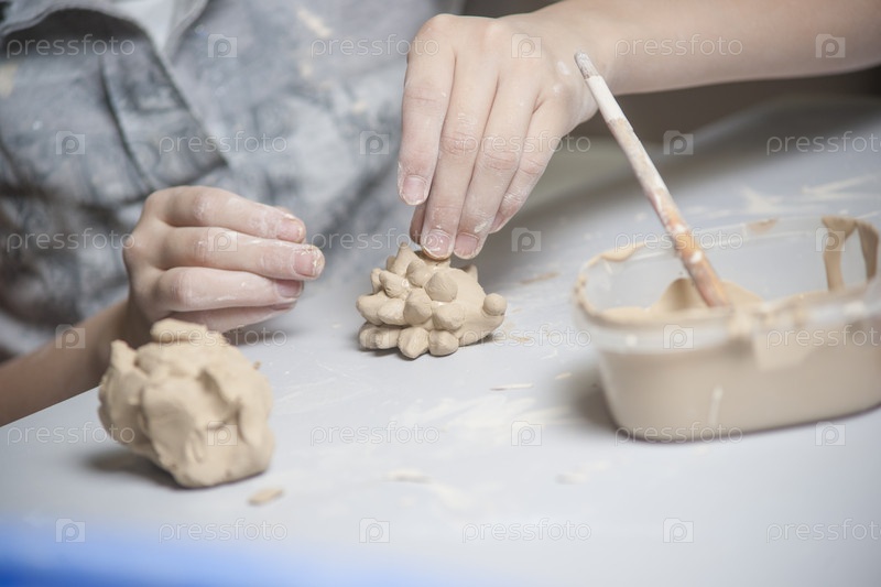 Девушка делает игрушку из глины