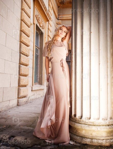 Красивая блондинка в платье на открытом воздухе