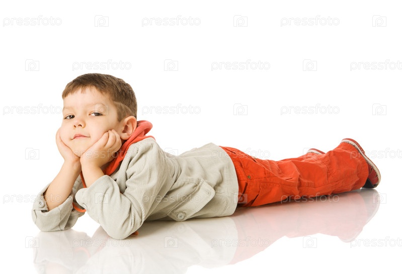 Маленький мальчик лежит на полу