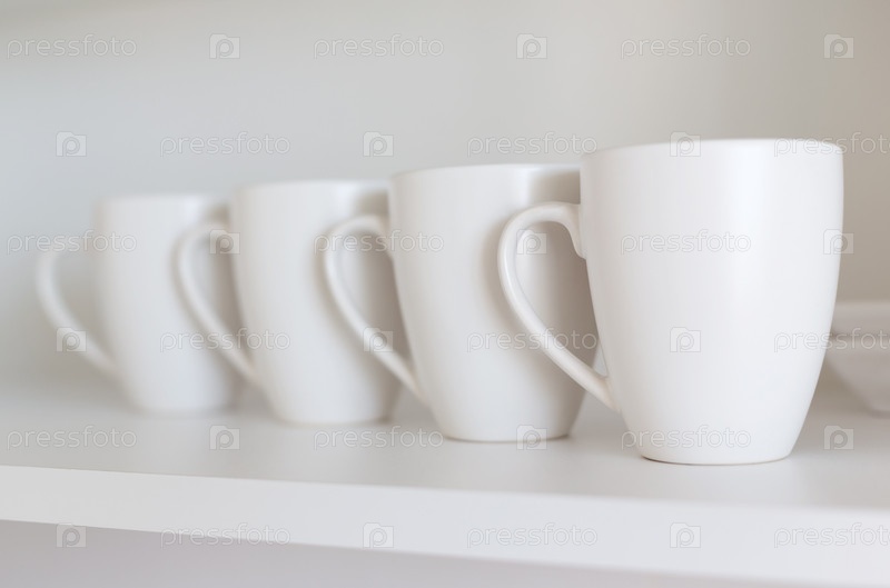 Белые чашки на полке