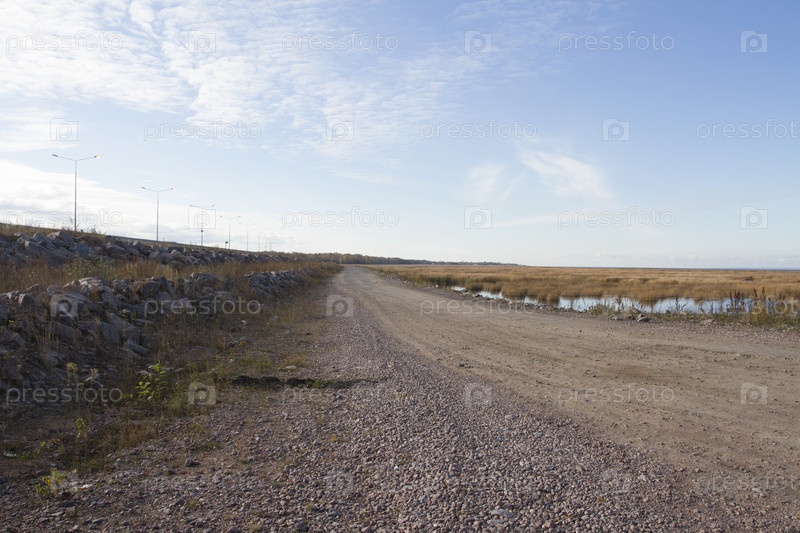 Песчаная дорога вдоль зарослей камыша