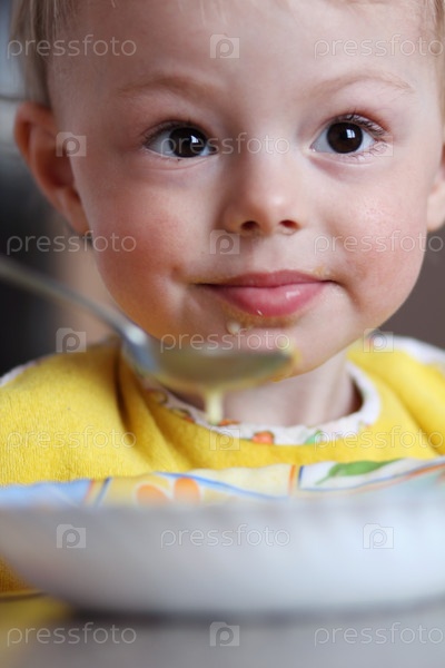 Маленькая девочка ест суп