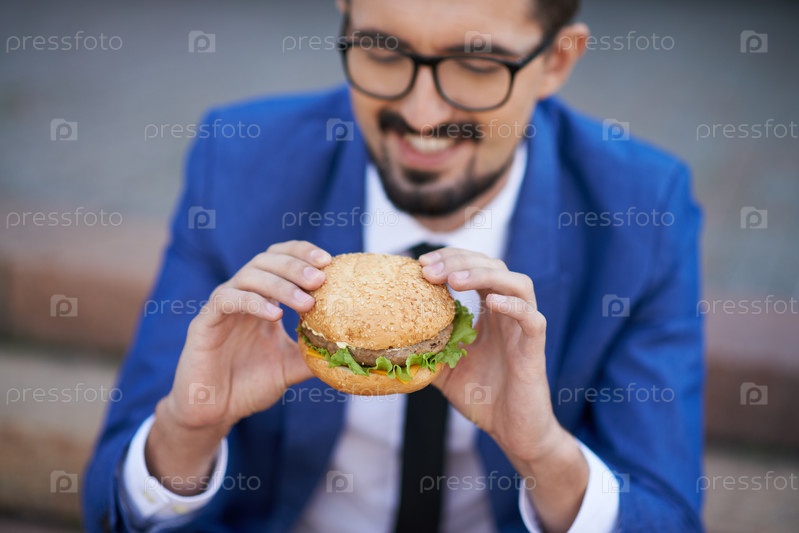 Бизнесмен ест бутерброд