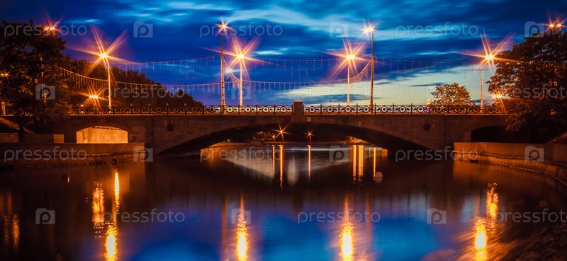 Ночной мост через реку в Минске, Белоруссия
