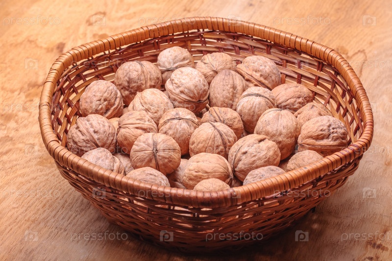 Корзина, полная грецких орехов