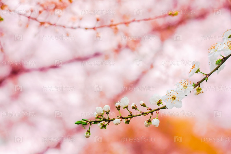 Ветка сакуры с белыми цветами