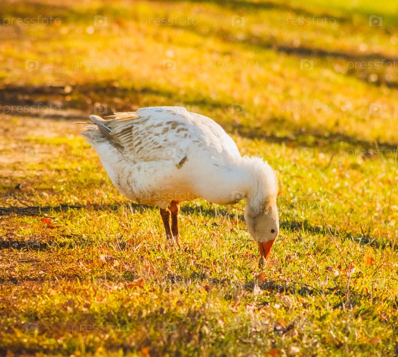 Гусь на зеленой траве