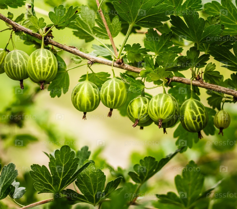 Крыжовник на кусте в саду