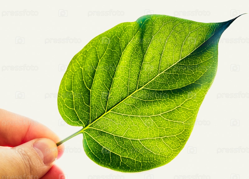 Зеленый лист, изолированный на белом фоне
