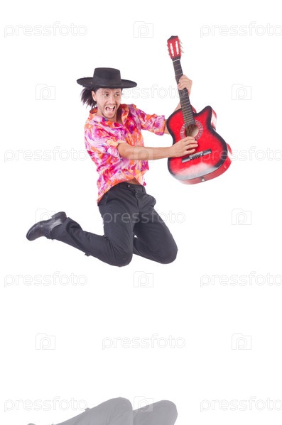 Мужчина с гитарой, изолированный на белом фоне