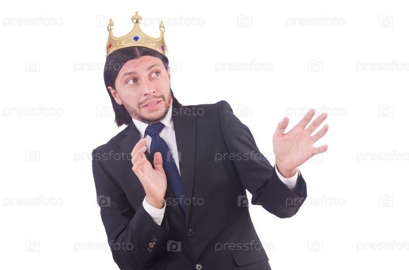 Бизнесмен в короне, изолированный на белом фоне