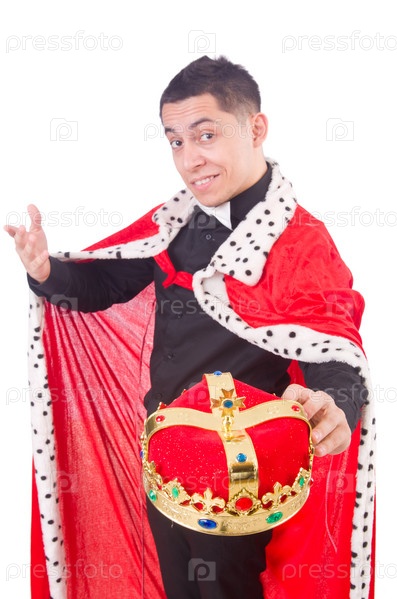 Бизнесмен с короной, изолированный на белом фоне