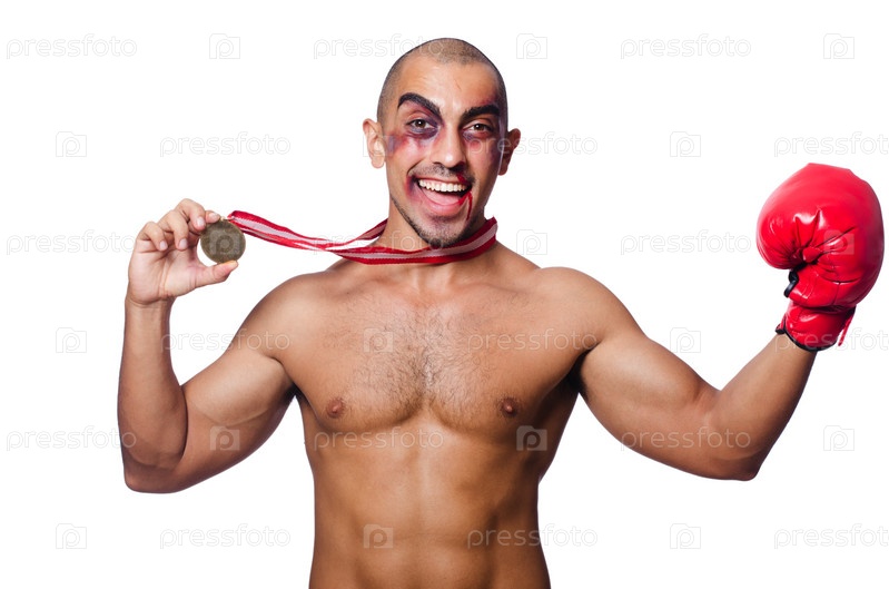 Избитый боксер, изолированный на белом фоне