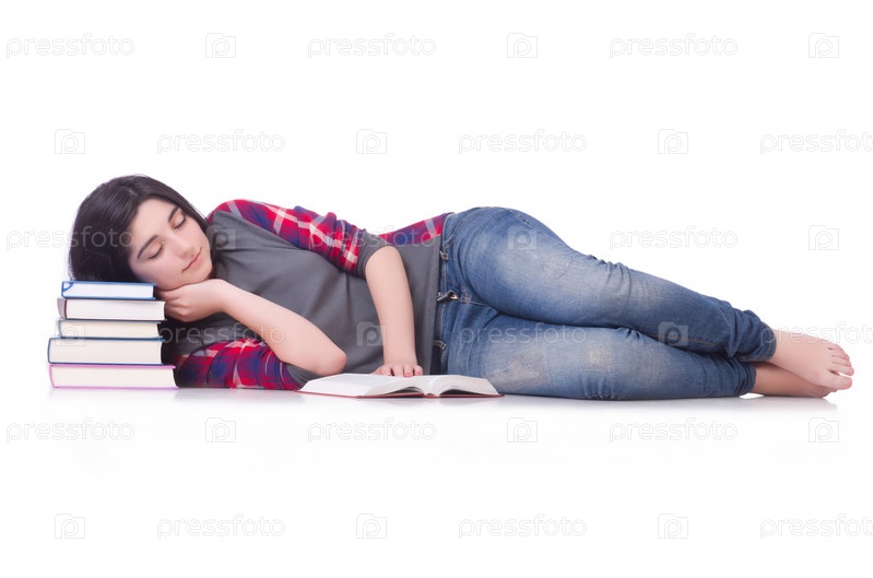 Студентка с книгами, изолированная на белом фоне
