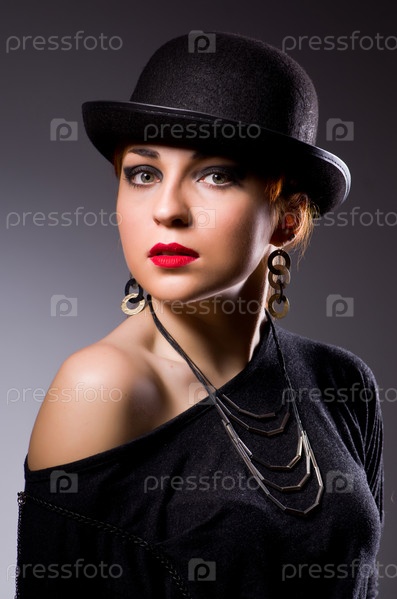Женщина в стиле ретро в темной комнате