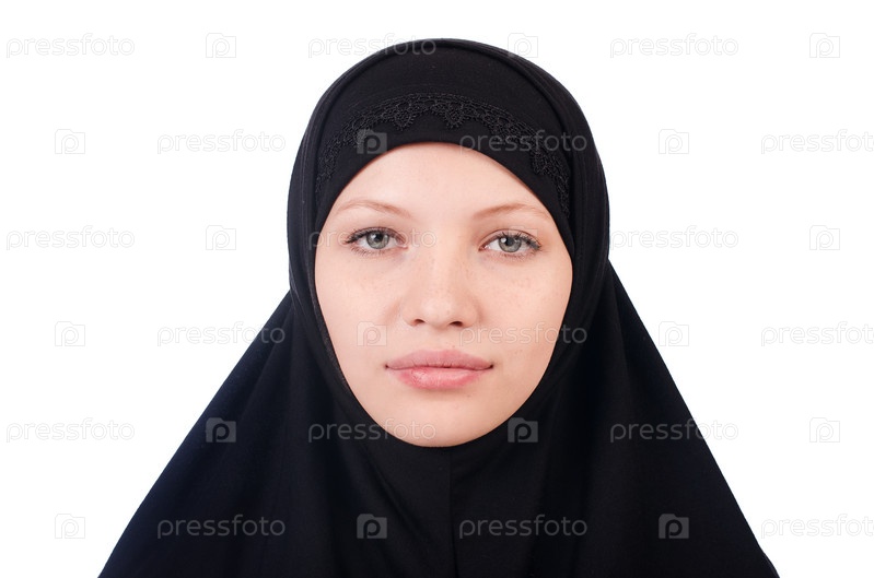 Женщина с мусульманской парандже, изолированная на белом