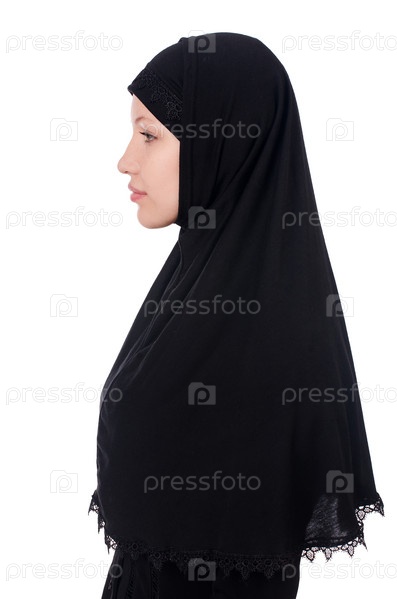 Женщина с мусульманской парандже, изолированная на белом