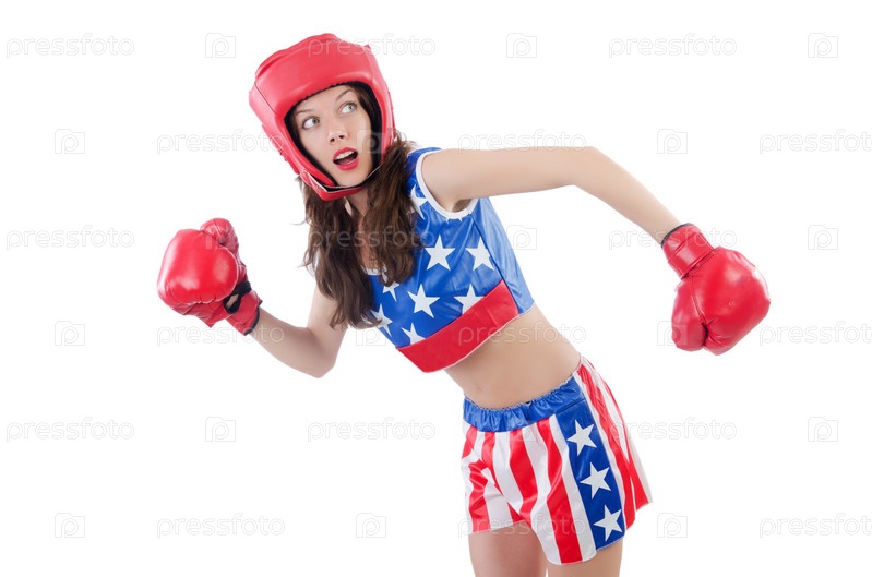 Женщина-боксер, изолированная на белом фоне