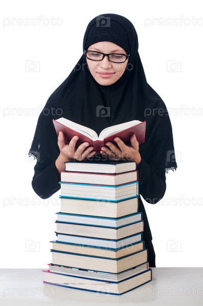 Молодая мусульманская студентка с книгами