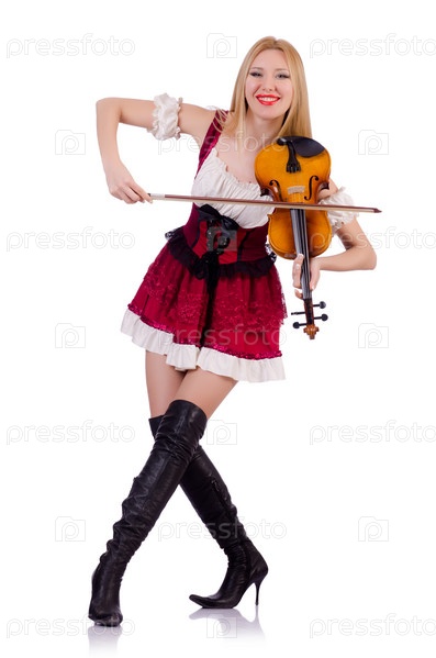 Девушка играет на скрипке на белом фоне