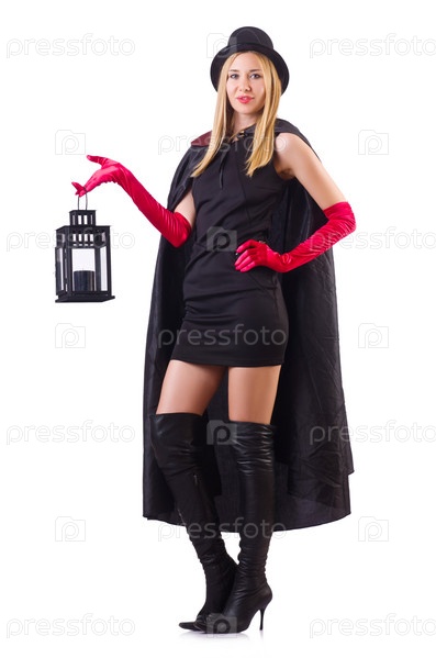 Модель с фонарем, изолированная на белом фоне