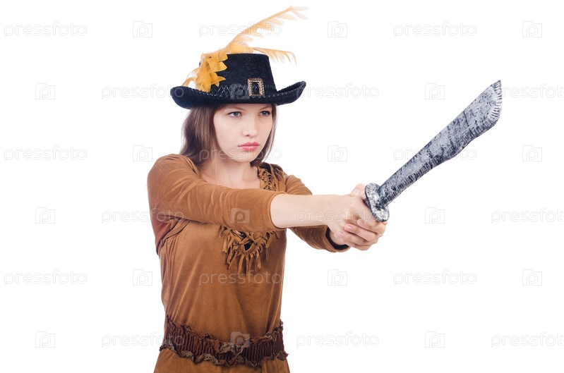 Пират с ножом, изолированный на белом фоне