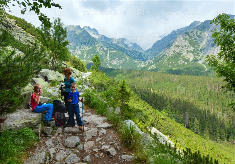 Семья на тропе в высоких Татрах, Словакия