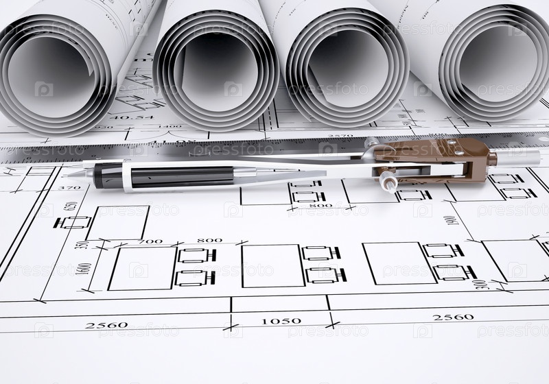 Циркуль и линейка лежат на чертеже
